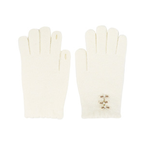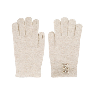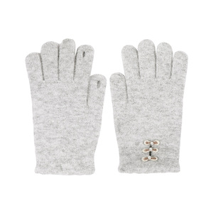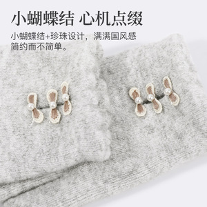 秋冬季保暖手套女珍珠蝴蝶结成人触屏针织手套加绒防寒骑行手套男