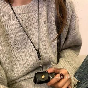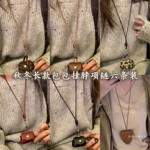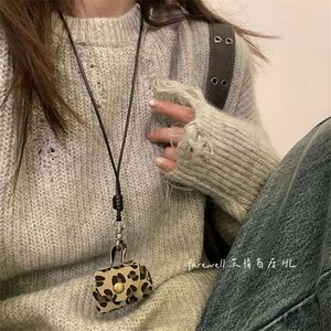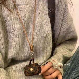 新款耳机包高级感卫衣链迷你豹纹零钱包项链复古棕色小包毛衣链