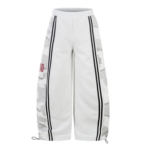 迷彩拼接三条杠运动休闲阔腿裤美式潮牌男士长裤宽松可束脚弯刀裤