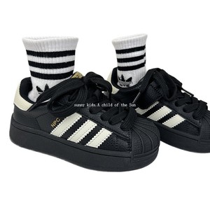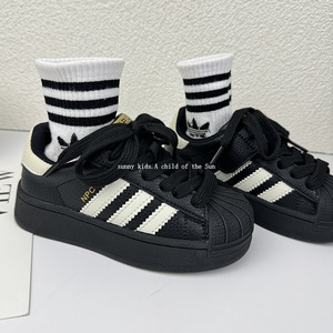 儿童贝壳头板鞋秋季新款真皮女童运动鞋轻便防滑黑色男童休闲鞋子