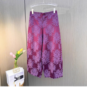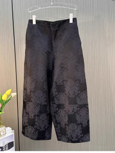 新中式浮雕提花休闲九分裤女2025秋季新款高腰宽松显瘦哈伦阔腿裤