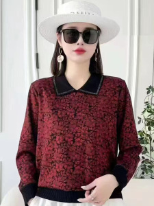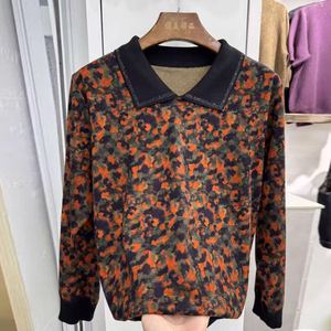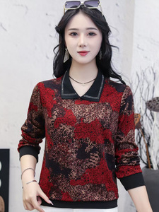 中老年女装2025秋装新款长袖T恤小衫大码宽松妈妈装春秋带领洋气