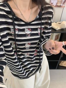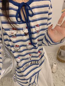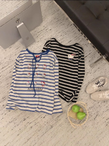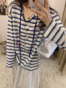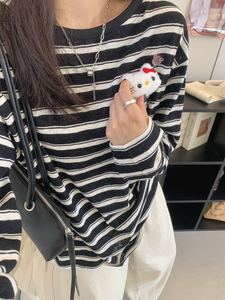 25秋季新款韩系Kitty猫挂件前后两穿卡通减龄设计感条纹打底衫