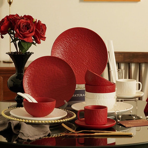 【锦盒装】红色石纹餐具11件套-(4碗2盘)