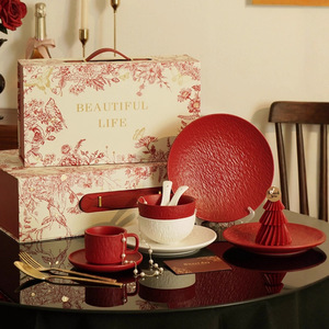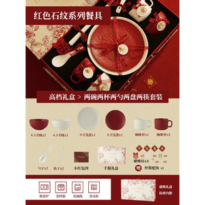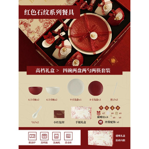 高档礼盒碗碟餐具陶瓷新婚礼物送新娘红色碗盘筷套装乔迁新居结婚