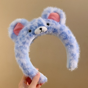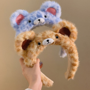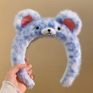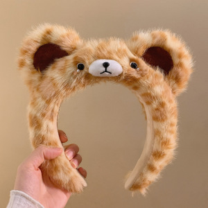 可爱豹纹小熊耳朵毛绒发箍女日常外戴高颅顶宽边头箍洗脸头饰秋冬