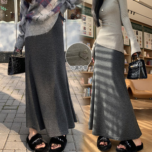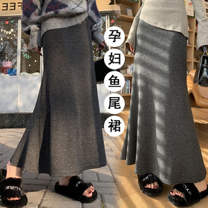 现货孕妇黑色半身裙女新款秋冬季复古高腰设计感糯米包臀鱼尾长裙