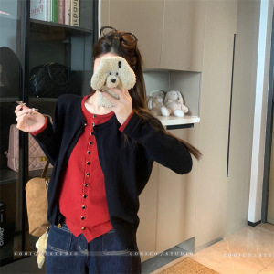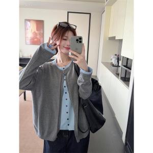 大码女装秋冬胖mm针织开衫假两件长袖毛衣外套