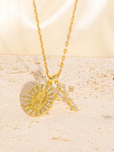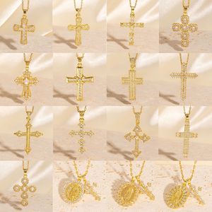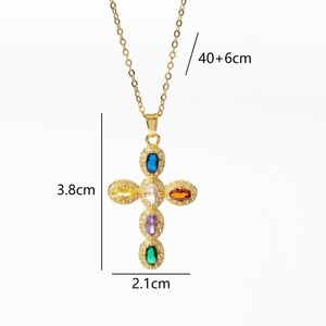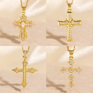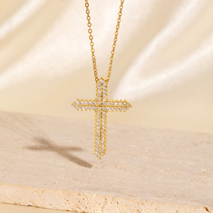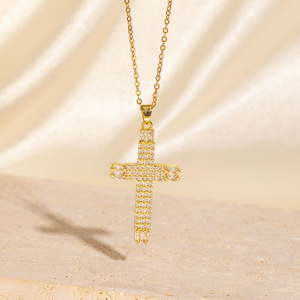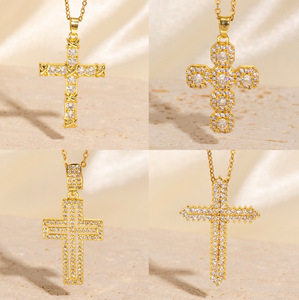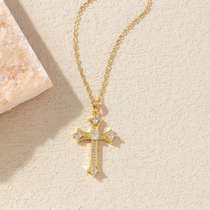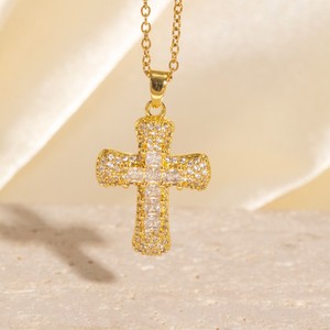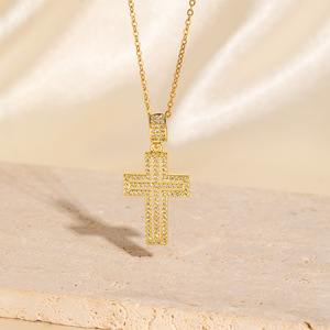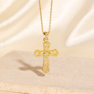 跨境爆款铜镀18K金满钻金色十字架项链女式镶锆高级感十字架项饰