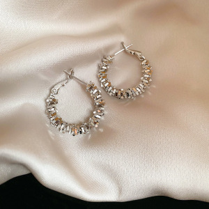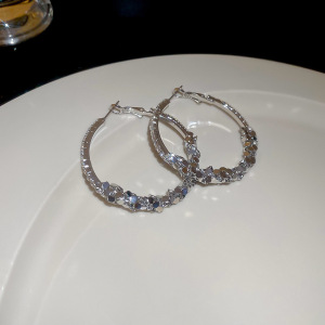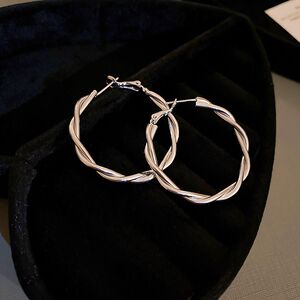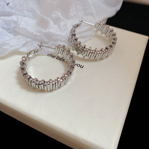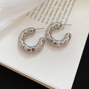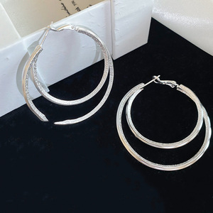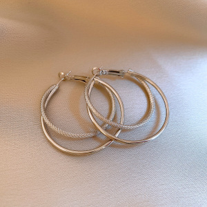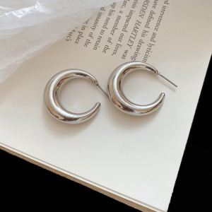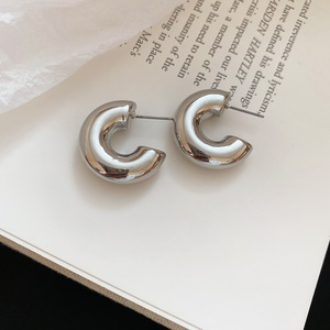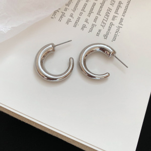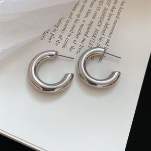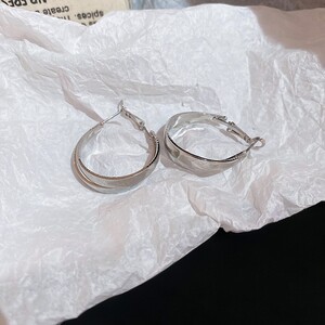 银针冷淡风银色金属圆形耳环轻奢高级感耳圈女时尚耳饰设计感小众