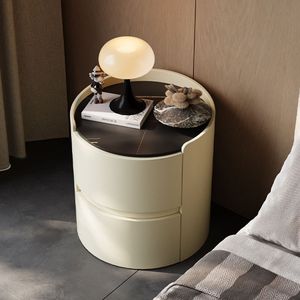 圆形床头柜意式极简轻奢岩板床边柜高级简约现代实木卧室收纳储物