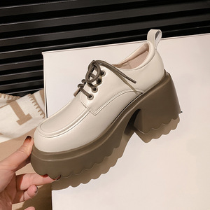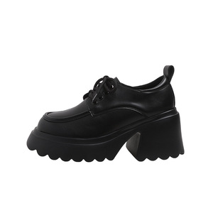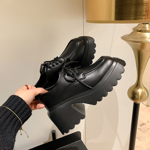 小皮鞋女英伦风春季新款粗跟百搭小个子高跟单鞋厚底增高乐福鞋女