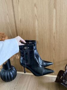 2025新款百搭尖头女靴时尚欧美风裸靴瘦瘦靴法式复古短靴高跟鞋女