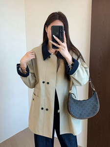 客供面料 立裁挺括有筋骨撞色翻领落肩袖日系工装休闲风衣春秋季