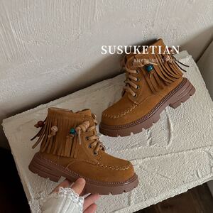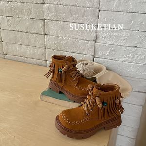 苏萌儿童流苏厚底马丁靴女童2025秋冬季新款复古休闲男童短靴切尔