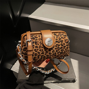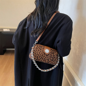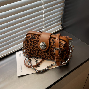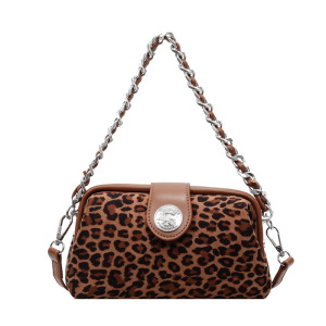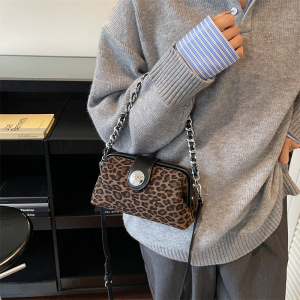 小众时尚夹口包女式手提包2025新款麂皮绒小方包豹纹单肩斜挎包