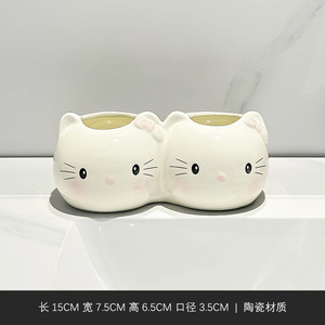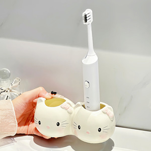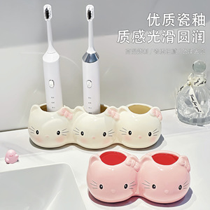 可爱猫咪电动牙刷架家用卫生间洗漱台牙膏牙具收纳底座陶瓷置物架