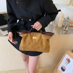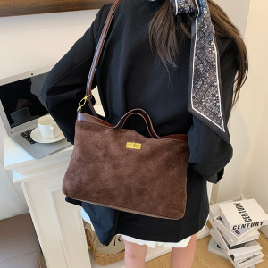 复古大容量手提包女式包包2025秋冬新款麂皮绒托特包简约斜挎包