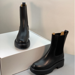缪厚底增高一脚蹬松紧马丁靴女2025秋冬新款高品质切尔西真皮短靴