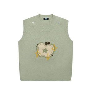 嘻哈潮牌oversize苹果提花宽松毛衣马甲男女款美式复古V领针织衫