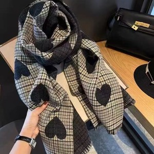 新款仿羊绒加厚围巾秋冬柔软爱心格子情侣围巾爆款学院风围脖批发