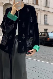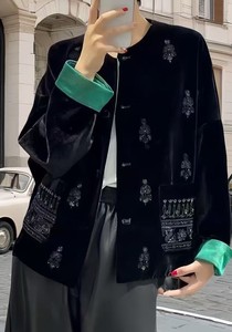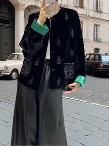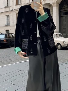 25新款中式复古优雅气质重工精致刺绣亮片盘扣丝绒外套146