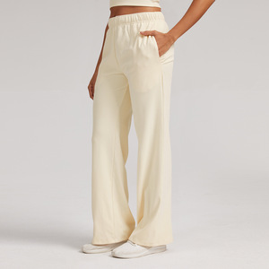 跨境秋冬德绒高腰卫裤阔腿显瘦抽绳宽松休闲长裤户外运动跑步卫裤
