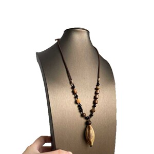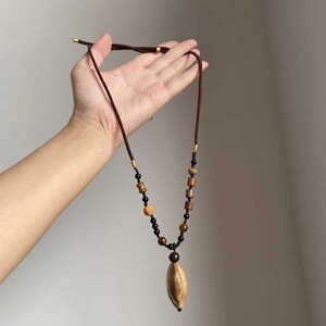 新中式波西米亚焦糖木质串珠吊坠项链秋冬复古禅意国风毛衣链配饰