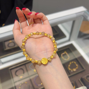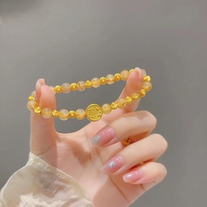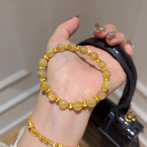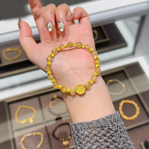 石英石仿黄发晶五路财神手串女新款本命年转运猫眼珠手链送礼物女