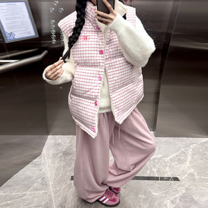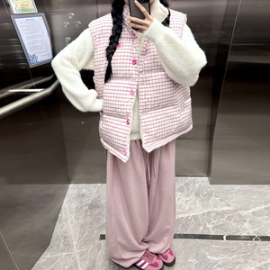 格纹两面穿羊羔毛马甲2025棉服外套女慵韩系慵懒风独特漂亮小棉袄