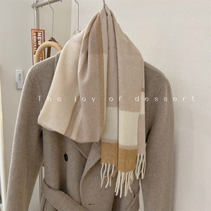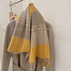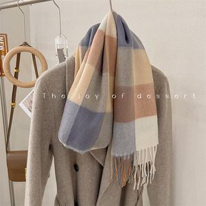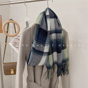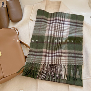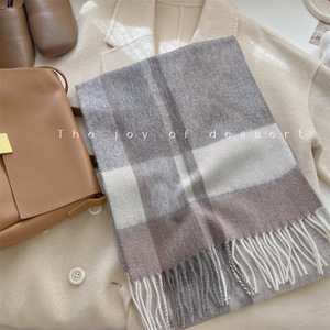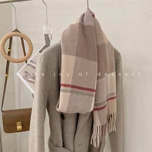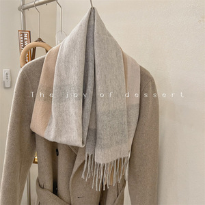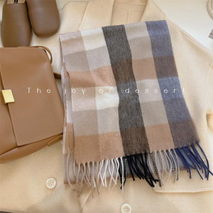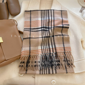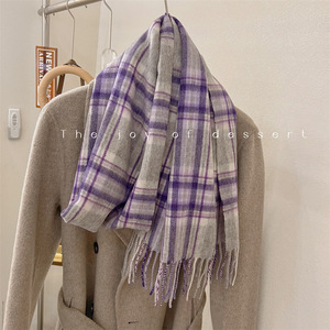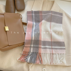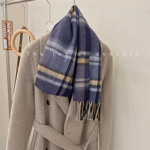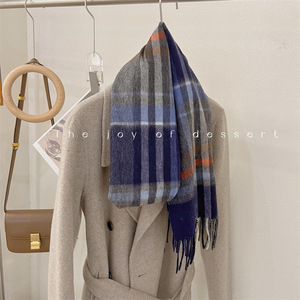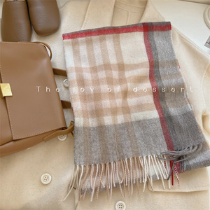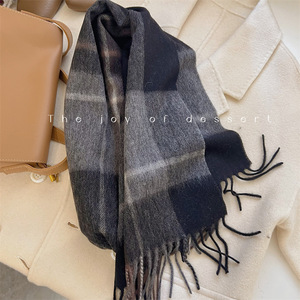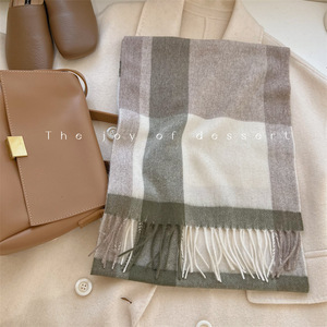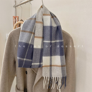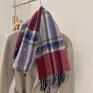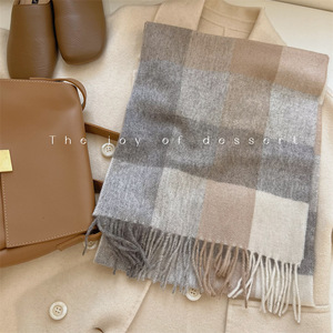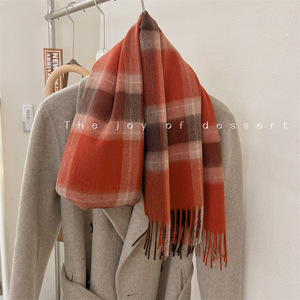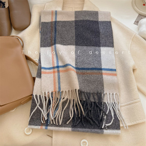 美拉德100%wool澳洲纯羊毛格子围巾冬男女百搭情侣围脖学生送礼物