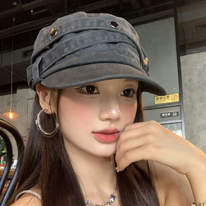 日系高级感复古做旧铆钉平顶鸭舌帽子女气质休闲百搭显脸小马术帽