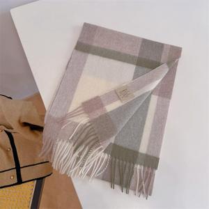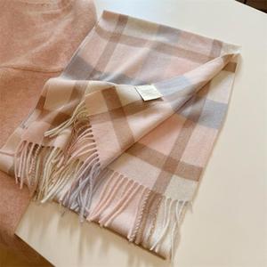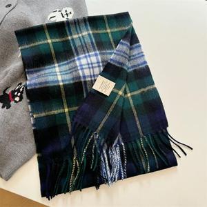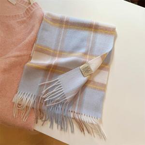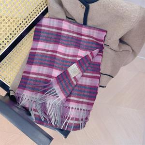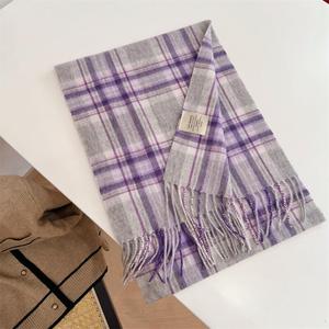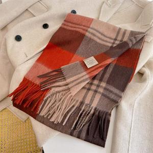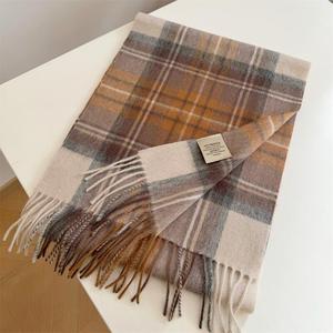 复古氛围感南瓜棕1OO%澳洲纯羊毛围巾女冬季格纹流苏窄版韩高级感