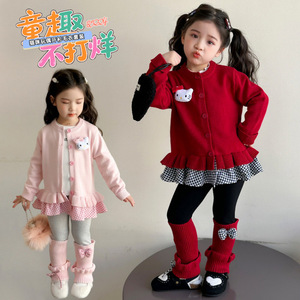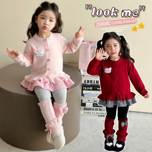 女童毛衣套装2025新款洋气儿童针织开衫外套宝宝春秋款打底裤套装