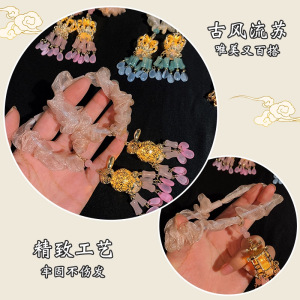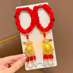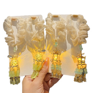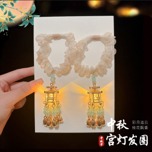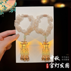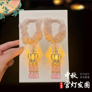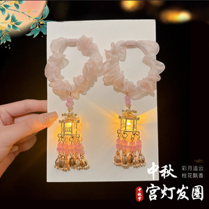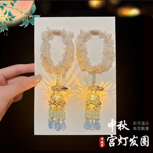 2025新款中秋节国风灯笼发光发圈儿童道具表演兔子发绳丸子头皮筋
