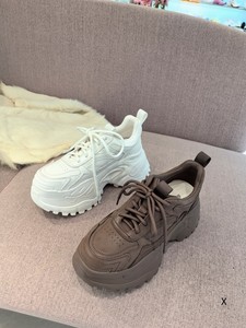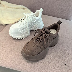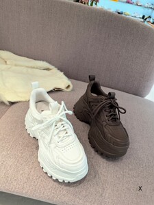 欧洲站XJ女鞋25秋冬时尚软胎小牛皮圆头系带增高轻厚底老爹慢跑鞋
