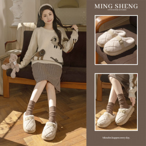 毛绒棉拖鞋轻奢格子女士情侣月子棉鞋秋冬季室内居家保暖舒适家用