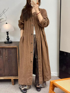 女装秋装冬装女装通款复古高端亚麻长袖风衣文艺休闲气质女装