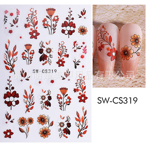 新款秋天系列美甲贴纸 ins风美拉德秋天落叶花草干花背胶指甲贴花