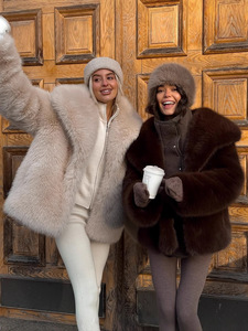 外贸跨境欧美风秋冬翻领仿皮草外套女蓬松毛绒狐狸毛环保皮草批发