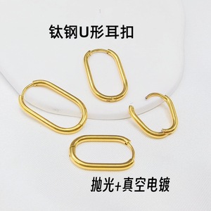 真空电18k金长方形耳扣钛钢u型耳环耳扣轻奢耳饰女
