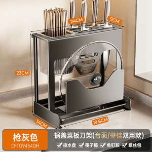 【加大加厚】枪灰色-锅盖菜板刀架【送沥水盒】(壁挂台面双用款)
