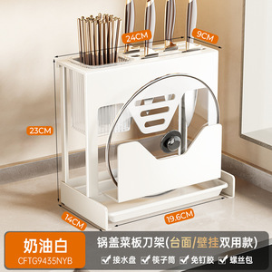 【加大加厚】奶油白-锅盖菜板刀架【送沥水盒】(壁挂台面双用款)