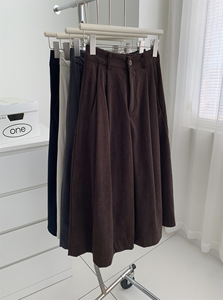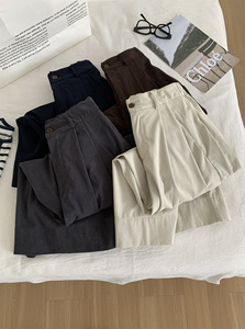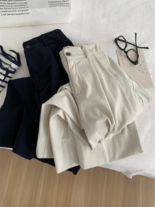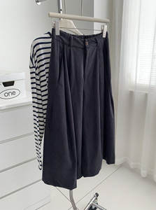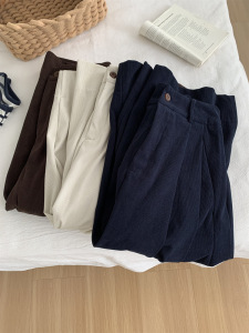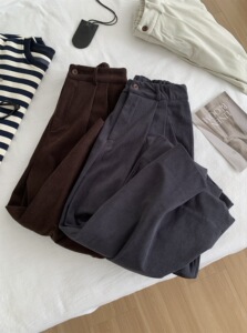 秋冬格雷系洋气复古chic灯芯绒阔腿八分裤女深灰色高腰直筒休闲裤