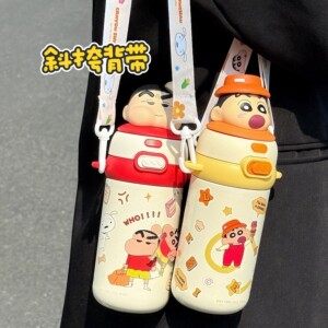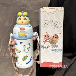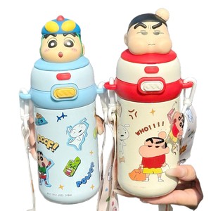 蜡笔小新儿童保温杯男女孩316不锈钢带吸管幼儿园可斜挎双饮水壶