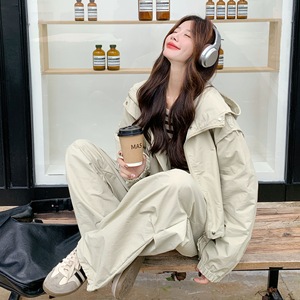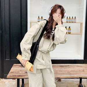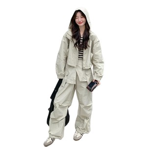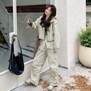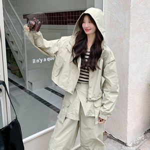 复古工装口袋休闲短款连帽短外套2025年秋季新款韩版气质休闲裤子