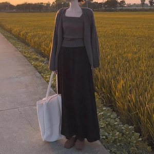 秋装搭配一整套女高级感针织开衫背心女高腰显瘦半身裙三件套女潮