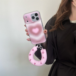 粉棕渐变晕染爱心 壳+刺绣字母腕带