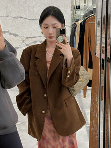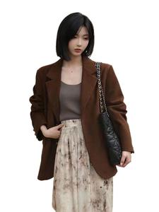 咖色复古西装外套女2025秋新款时尚设计感小众宽松休闲西服上衣