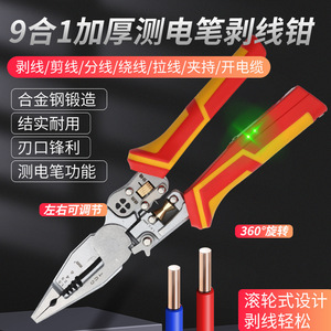 新款加厚带测电功能9合1多功能剥线钳剪线拔线电缆剪压线电工钳